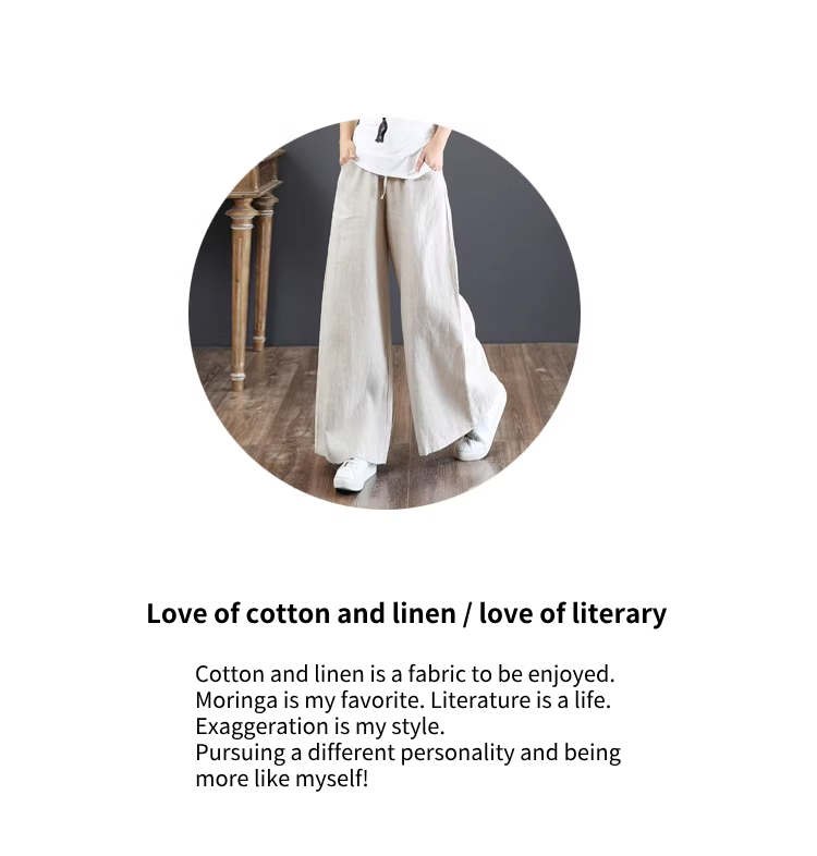 (25% off any two items) Cotton linen high-waisted loose plus size wide-legged pants straight pants
