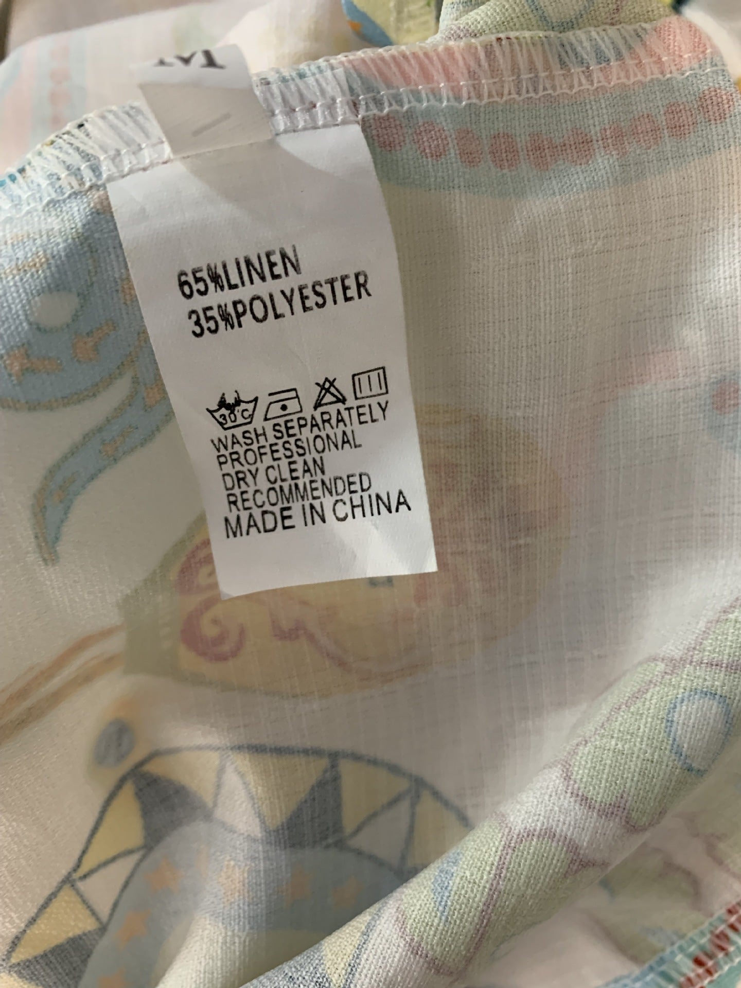 Lapel Tie Waist Positioning Printed Linen Resort Long Sleeve Dress